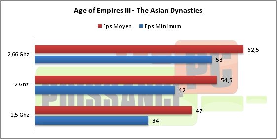 Les Rts apprécient grandement la puissance Cpu. Age of Empire III nous le confirme. Relativisons, 34 fps en minimum et pour un Rts, ce n’est pas dramatique. Toutefois, démo oblige, les combats étaient très locaux, donc l’IA relativement peu nombreuse. En cas de grandes batailles, nul doute qu’à 1.5 Ghz notre processeur aurait été plus poussif.