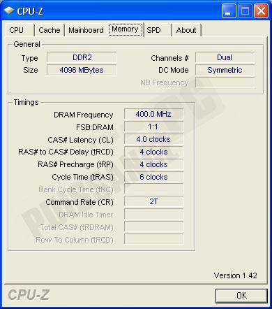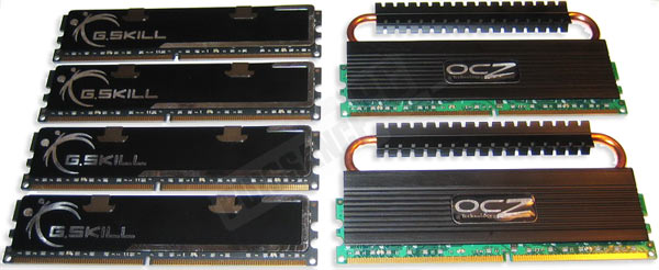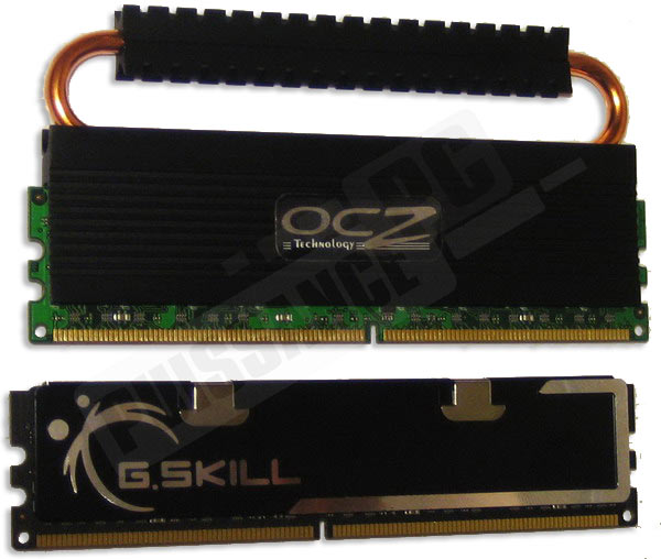 N’ayant pas sous la main d’autres kit 2x2048mo, nous nous sommes tournés vers 2 kits Gskill PC2-6400HZ. Ces derniers sont certifiés pour la même fréquence et les mêmes timings à une tension similaire. (2.0/2.1v) Pour autant, ces barrettes constituent le haut de gamme PC2-6400 chez Gskill et ont une excellente réputation en particulier en terme d’overclocking. L’affrontement promet donc d’être très passionnant et nous éclairera sur les capacités des barrettes haut de gamme à cohabiter à 4 sur un X38!