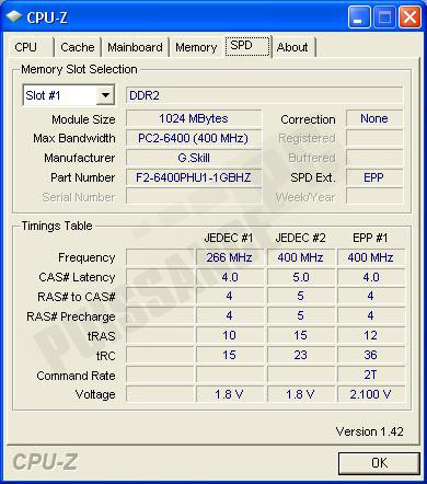 Et niveau SPD cela donne quoi? Là aussi des profils Jedec pour les différentes normes et, surprise un profil EPP est lui aussi présent preuve de la bonne adoption du standard nVidia par les fabricants de barrettes mémoire (à l’origine seul Corsair proposait de tels profils EPP).