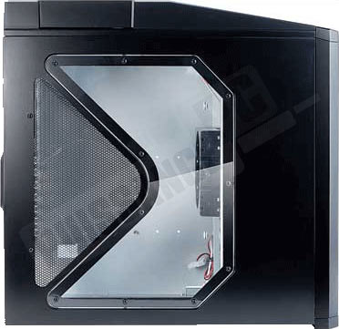 Enfin sur la façade latérale, en outre de la vitre plexi, nous retrouvons un large passage de ventilation surmonté d’un support en plastique transparent capable d’accueillir un ventilateur 120mm optionnel qui arrosera alors sans modération la carte graphique mais aussi l’ensemble des composants et radiateurs se trouvant à proximité.