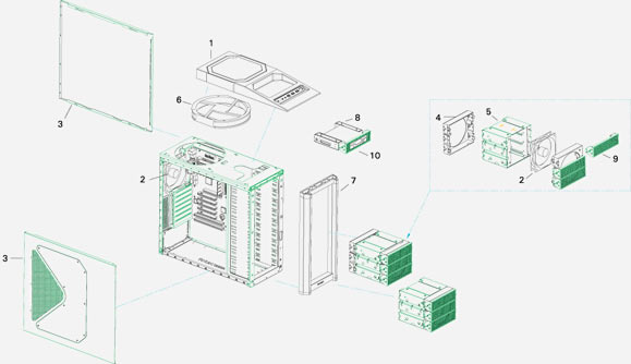 En contrepartie, et en absence d’une quelconque filtrage, il vous faudra faire attention à l’entretient de votre machine –surtout en Lan, endroits plutôt propices à de fortes concentrations de poussières–, éviter de devoir mettre des mains dans la cambouis sous peine de passer 30minutes à monter un disque dur, et faire preuve d’orfèvrerie pour avoir un intérieur tiré à quatre épingles.
