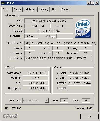 S’il est un processeur attendu par grand nombre ici, c’est bien le Q9300, qui proposé à 270 dollars, prendra la place du Q6600. En effet ce Core2quad yorkfield dérivé de la révision penryn fonctionnera à 2.5 GHz et aura une mémoire cache L2 de 6 Mo contre 2.4 GHz et 8 Mo pour le Q6600. Dè lors, ce futur best seller a été testé par Coolaler qui l’a monté à 3.7 Ghz "fingers in the nose". Voilà donc si besoin en était que le potentiel d’overclocking déja connu des Penryn sera redoutable, et que la barre des 4 Ghz en air sera franchie en routine comme celle des 3 Ghz l’est depuis longtemps. (Source Revioo)