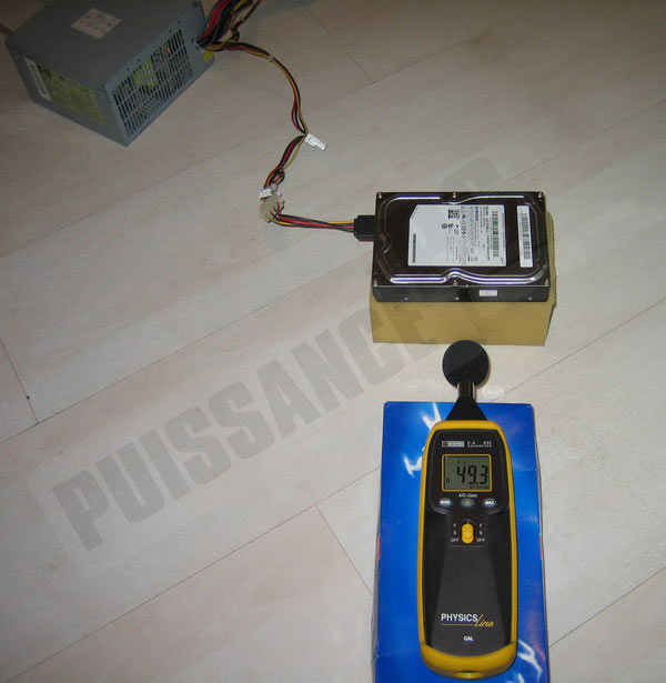 Passons à présent aux accès (ici les accès lors de la phase d’initialisation du disque). 49,3db à 5cm, c’est un peu plus audible, toutefois cela reste encore une fois très raisonnable.