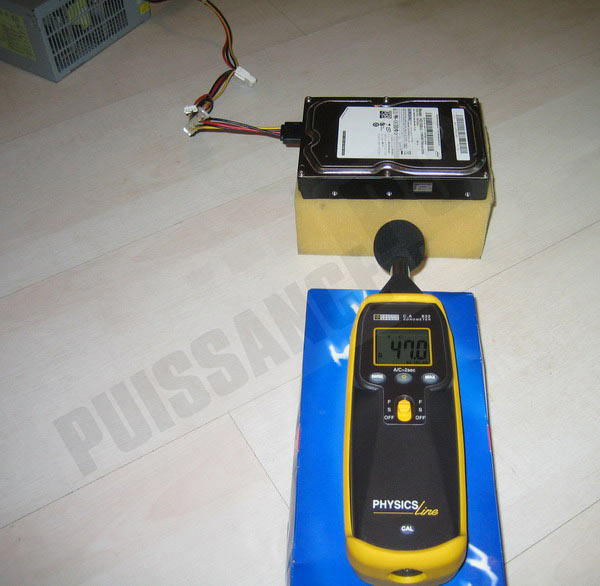 Mesurons la pression acoustique issue du disque en rotation mais sans accès: 47db un excellent chiffre compte tenu de la proximité du sonomètre. De manière claire, les disques (le niveau sonore est très similaire pour ne pas dire identique entre les 2 versions) sont silencieux en rotation mais pas inaudibles pour autant, surtout si on s’en rapproche. Toutefois cela reste très limité au niveau des émissions sonores.