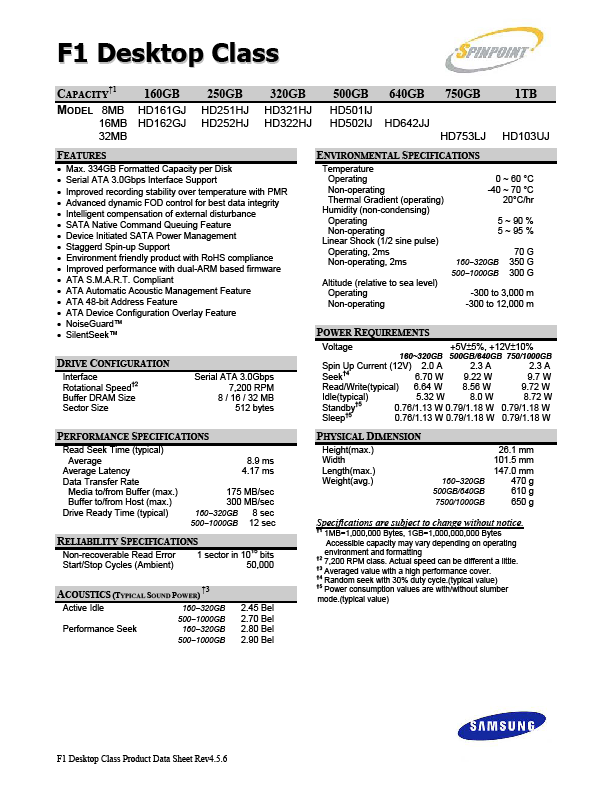 Un petit saut chez Samsung pour voir les caractéristiques de la série F1: