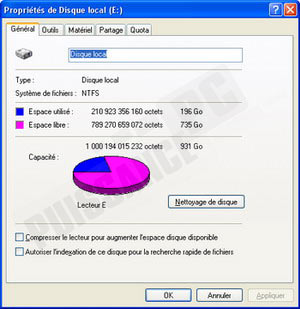 Voyons nos disques sous l’explorateur de Windows. 931Go pour le 1To et 698Go pour la version 750Go. C’est habituel les constructeurs exprimant en octet leur capacité mais simplifiant leur calcul (en divisant par 1000 au lieu de 1024 pour les passages en Ko, Mo et Go) à leur avantage avant d’exprimer la capacité en Gigaoctet ou Téraoctets. Seulement si sur de petits disques l’écart est plutôt faible, sur de telles capacités l’écart est franchement significatif!