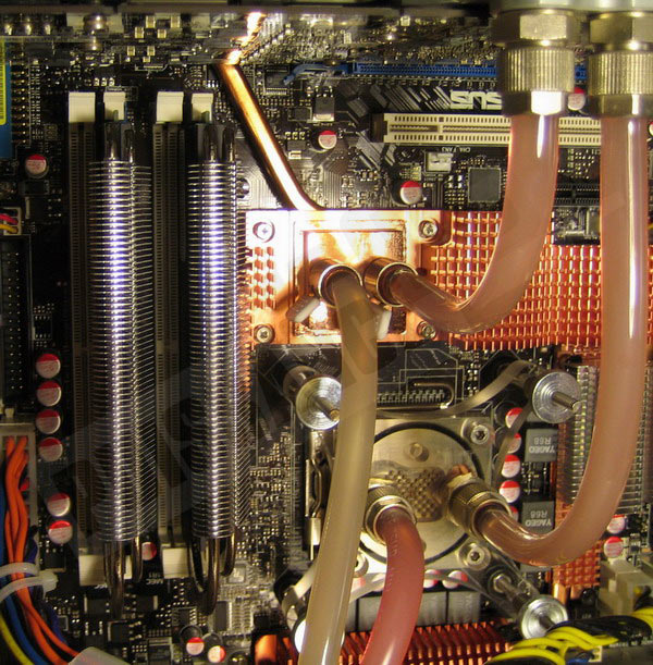 Voyons l’impact une fois les barrettes montées et donc le principal défaut du système ReaperX : impossible d’espérer utiliser 4 sticks avec ce système et un espacement "standard" entre les emplacements mémoire. Si pour un Kit 4Go comme celui-ci c’est peu gênant, il en sera peut être autrement pour des kits de capacité moindre.