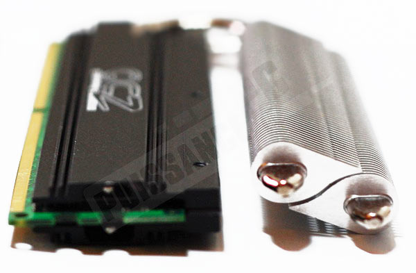 Si on s’attarde plus sur chaque barrette, on retrouve le sticker OCZ collé sur un radiateur latéral duquel s’extrait un heatpipe aboutissant au radiateur surplombant le stick. Voyons cela en détail.