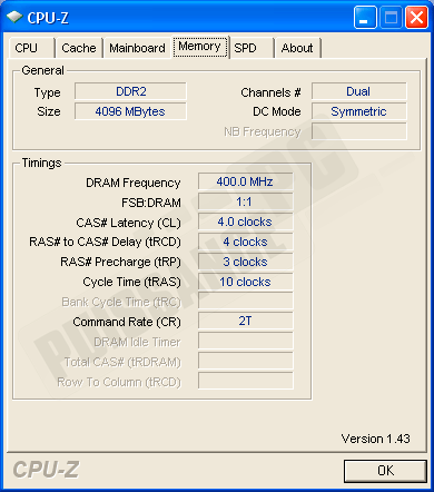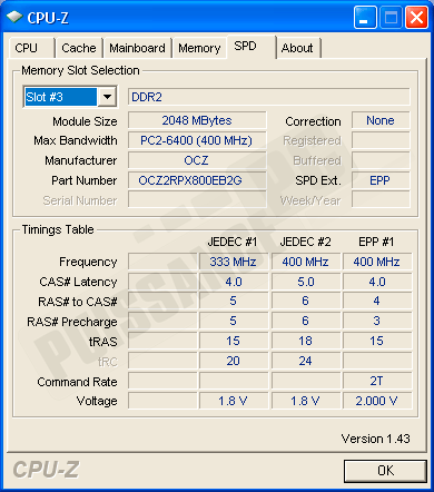 Au niveau du SPD, on retrouve les normes JEDEC 333 et 400mhz ainsi que le profil EPP 4/4/3 pour nForce nécessitant 2.0v.