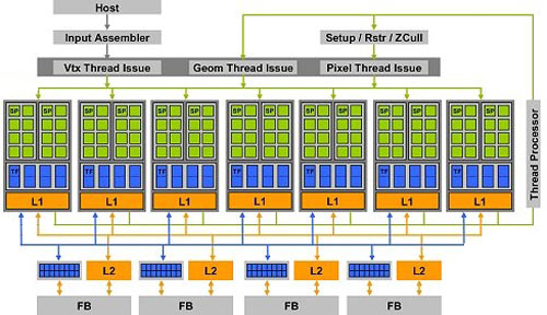 Les différences entre le G80 et le G92 ne sont d’ailleurs pas vraiment claires, et ce fort logiquement puisque Nvidia ne les a pas dévoilées au public, pas plus qu’à nos espions ayant tenté le dialogue sur le sujet. La communication sur ces ‘nouvelles’ puces est plutôt focalisé sur les + du produit que sur les aspects techniques qui cachent les quelques millions de transistors de différence par rapport au G80. Ainsi techniquement, le circuit NvIO chargé de gérer des sorties vidéo des cartes est intégré au GPU; l’on note le support du PCI Express 2.0, du PureVideo 2 (gérant en hard le décodage du H264), l’amélioration du répartiteur de charge interne, et une restructuration des unités de texturing suivant le modèle déjà opéré sur les déclinaisons du G80, les G84 et G86 ; conférant au GPU plus d’efficacité dans le traitement de textures non filtrées. Mais y a t-il autre chose ?