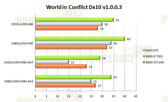 Faisons une petit incursion dans le monde des jeux de stratégie / tactique. Visuellement vraiment abouti, le titre est un véritable gouffre à CPU et à mémoire graphique. Une GTS320 est larguée sur des résolutions élevées, voyons voir ce qu’il en est de madame la GT.