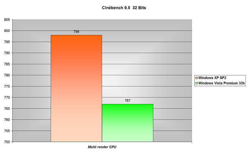 Super Pi qui n’est pas optimisé dual core n’avait pas réussi à départager Vista et XP sur le processeur. Est ce que Cinebench, optimisé dual core, en est capable?