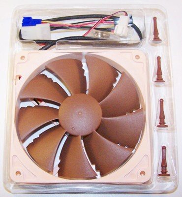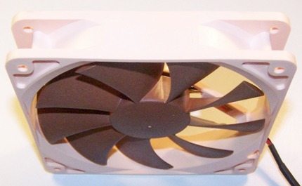 Dernier point au sujet du NF-P12 qui n’est pas visible sur les photos: le rotor n’a pas de jeu par rapport au stator, ce qui va à l’encontre des ventilateurs classiques que l’on peut trouver. Si vous avez un ventilateur près de vous n’hésitez pas à le prendre et à faire l’essai: en attrapant le rotor vous pouvez le déplacer légèrement en hauteur, un jeu non négligeable de l’ordre de 2 ou 3mm. Ce phénomène est d’ailleurs souvent à l’origine de bruit parasites pour certaines orientations du ventilateur. Le rotor du NF-P12 ne bouge lui pas d’un mm, donnant une impression de robustesse et de fiabilité.