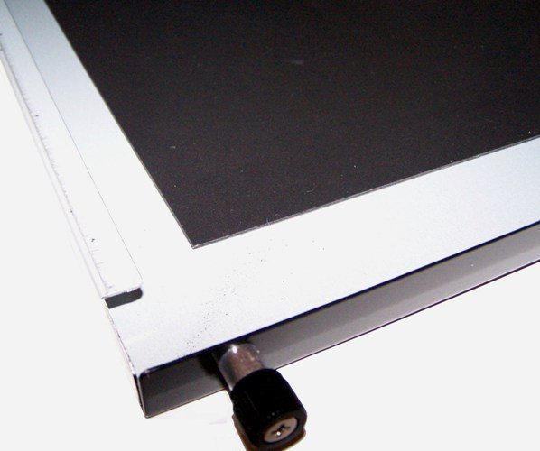 Pour finir ce tour d’horizon de l’intérieur du boîtier, signalons un détail intéressant là aussi pour les amateurs de silence: les parois du boîtier sont doublées d’un fine plaque noire d’1mm d’épaisseur environ. Il s’agit de "polycarbonate haute densité" qui améliore l’insonorisation globale du boîtier.
