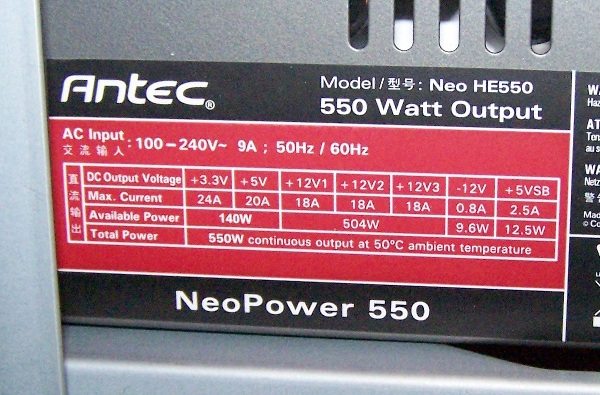 504W est une très bonne puissance maximale en +12V sur une alimentation de 550W, il n’y a donc aucun souci sur les chiffres annoncés par Antec qui indiquent une alimentation qui a un sacré coffre. Ce n’est malheureusement pas toujours le cas, il faut être très prudent quand vous souhaitez acquérir une alimentation.