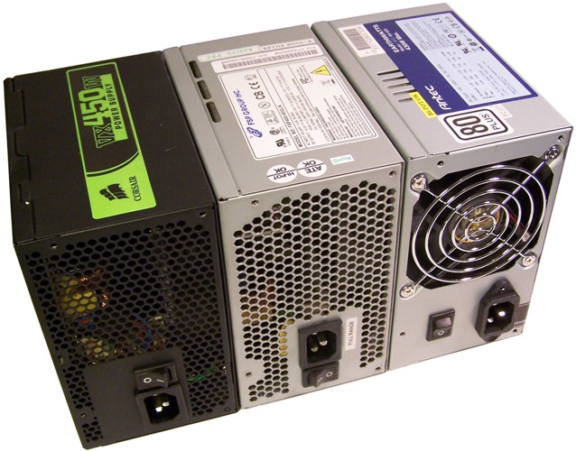 de gauche à droite les Corsair VX450W, Fortron Green 400W et Antec Earthwatts 430W