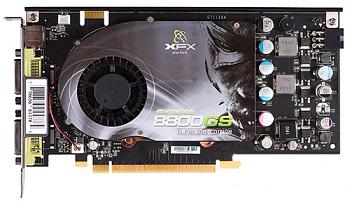 - 8800GTS 512Mo : Encore une puce G92, la plus aboutie par ailleurs, puisqu’elle possède 128 unités de calcul. Afin de la démarquer encore plus de sa petite soeur la GT, les fréquences ont été augmentées pour atteindre 650/1625/970 MHz pour le core/shader/mémoire. Là encore, les 512Mo de GDDR3 ont une largeur de bus de 256 bits. La carte est au format double slot d’usine, avec un ventirad bien dans la tradition des ventirads silencieux depuis l’époque des 7800 GTX512. Proposée autour des 250 € actuellement, elle aussi a bien profité de la baisse de tarif débutée il y a un mois.