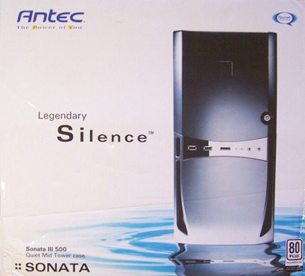 Comme à son habitude Antec propose un emballage au design soigné tout en restant épuré. L’eau est une nouvelle fois présente, ainsi bien sûr que la notion de Silence sur laquelle Antec a basé le marketing de la gamme Sonata.