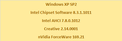 Pour le coté logiciel, nous réaliserons nos tests sous Windows XP SP2 en étant bien conscient que ce dernier ne permet pas d’exploiter l’intégralité des 4Go, mais là n’est pas le but de ce test ni celui des benchs utilisés. Pour le détail software c’est ci-dessous: