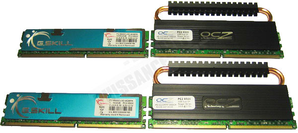 Nos 2 Kits tiennent leur certification PC2-8500, mais ne permettent pas d’aller très loin au delà avec une tension couverte par la garantie. Il semble évident que les puces équipant ces barrettes soient les mêmes vu leurs prestations très proches. On pourrait même avancer sans trop de risque qu’elles sont également identiques à celles des Kit Reaper 4GB précédents mais avec une sélection plus sévère.