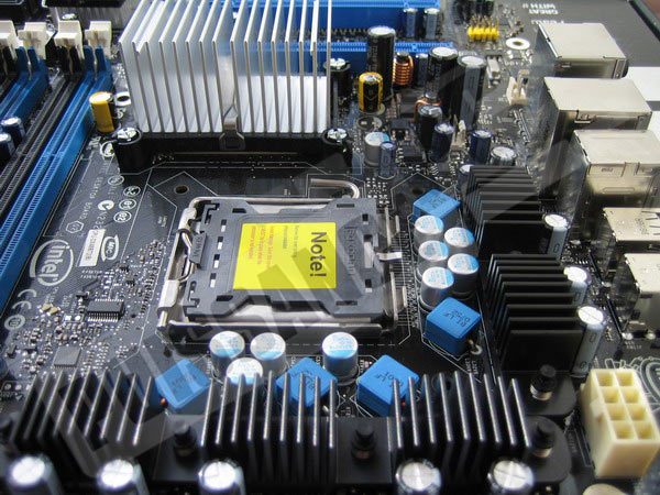 Intel a adopté un PCB noir toujours du plus bel effet sur les cartes mères. L’impression générale se dégageant de la carte est un mélange de simplicité et de qualité. En effet, pas de monstrueux radiateurs aux reflets cuivrés ici, pas de caloducs à la mode mais de "simples" radiateurs couleur aluminium. La disposition des différents ports d’extension est relativement bien étudiée, évitant d’en condamner certains lors de la mise en place de cartes volumineuses.