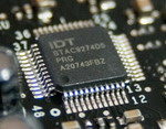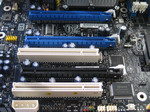 Pour finir notre petit tour du propriétaire, un rapide coup d’oeil sur la puce IDT gérant l’HD Audio et le contrôleur réseau made in Intel. Les 6 ports SATA connectés à l’ICH9R sont disposés par groupe de 2 pour permettre le passage des cartes PCIE longues sans les condamner.