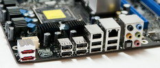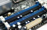 Attaquons par la première série de clichés. On retrouve ici 3 PCIE 16x physiques, par contre seuls les 2 premiers (ici en bleu) sont à la norme 2.0 et câblés électriquement en 16x. Le troisième (noir) est câblé en 4x depuis l’ICH9R. Le panneau de connexion arrière est constitué de 8 ports USB2.0, un port Firewire, un port Gigabit Ethernet et 2 ports E-Sata en sus de la connectique audio bien sûr. On notera la disparition définitive des ports PS2.
