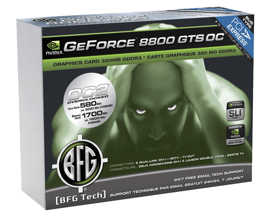 BFG annonce ce jour l’arrivée dans son catalogue de la 8800GTS 320Mo OC2, qui a quelques différences avec le modèle testé ici. En effet , toujours architectuée autour du 8800 GTS, le core tourne désormais à 580 MHz, les shader à 1350 MHz et les 320Mo de ram à 1700 MHz. Cette deuxième version possède par ailleurs 2 connexions DVI-I dual link, compatibles HDCP, tout en conservant le systême de refroidissement d’origine qui a fait ses preuves. Voila une carte qui est clairement indiquée pour ceux que les manipulations d’overclocking rebuttent. Plus pour le même prix, le prix public conseillé est de 350 euros.