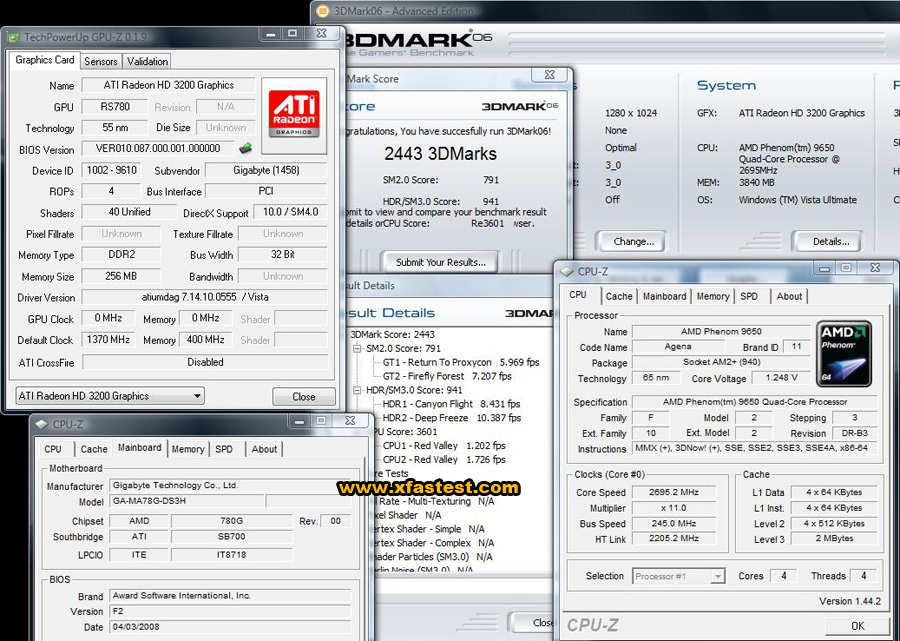 Il s’agit bien sûr du Radeon HD3200, nom donné à l’IGP intégré à l’AMD 780G. Nous vous avions déjà relayé en début d’année l’overclocking de ce chip graphique à 1GHz, mais il semblerait qu’il était alors loin d’avoir atteint ses limites puisque ce sont maintenant 1370MHz qui constituent son nouveau record d’overclocking. Une fréquence impressionnante quand on sait que Nvidia de son côté lutte avec son GeForce 8200 avec des soucis de surchauffe entre autre pour atteindre ne serait-ce que les fréquences d’origine prévues par la marque. Ce problème ne semble vraiment pas exister chez AMD/ATI ! La carte mère de l’exploit est la Gigabyte GA-MA78G-DS3H. (Source: Xfastest)