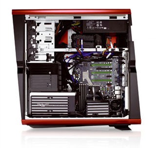La gamme XPS chez Dell respire le très haut de gamme des machines et plait particulièrement aux gamers. Dell vient de compléter sa gamme avec une nouvelle machine : le XPS 730 H2C. Cette machine s’annonce assez monstrueuse sur le plan performances, configurable à souhait vous ne pourrez y mettre que du Quad Core par exemple. La configuration de base comprendra un Intel Core 2 Quad 9450, 4Go de DDR3 1333Mhz overclockée à 1600Mhz, un 500Go avec 16mo de cache, deux ATI Radeon HD 3870 512Mo, une SoudBlaster X-Fi XtremeGamer et un graveur de DVD 16x, le tout fonctionnant sur Windows Vista Edition Familiale Premium. L’ensemble sera refroidi par WaterCooling, un système spécifique qui est en cours de brevetage : le H2C. Le boitier en aluminium est d’ailleurs conçu spécialement pour l’intégration de ce WaterCooling. Tout cela à un coût qui risque de freiner certains d’entre vous : le prix de base pour ce XPS 370 est de 3999 dollars, machine seule (sans écran donc). Et je n’ose même pas vous parler du prix des options… Plus d’images en suite de cette news.