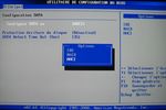 Hormis la date et l’heure, le menu Principal permet de choisir la langue du bios, choisir son type de lecteur floppy et configurer le contrôleur SATA. 3 modes sont disponibles pour ce dernier, c’est à dire IDE standard, Raid et AHCI qui permet l’activation en autre du NCQ des disques récent. On retrouve également un sous-menu affichant un résumé de la configuration (date et révision du bios, CPU, RAM).