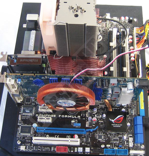 Coté refroidissement, c’est un Noctua NH-U12P qui aura la tâche de refroidir nos CPU, les cartes mère étant à l’air libre et le waterblock fusion non utilisé sur la Maximus Formula SE.