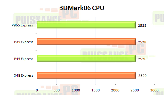 Pour ce qui est du sous-score CPU c’est encore et toujours blanc-bonnet et bonnet-blanc, bref le P45 apporte pour le moment les mêmes performances que son prédécesseur mais aussi que l’onéreux X48…