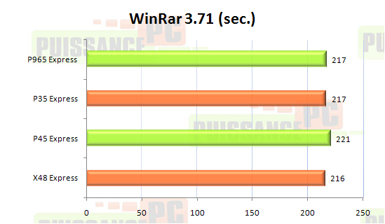 Le P45 rend quelques secondes au X48 et P35/965 probablement dû à ses performances HDD en berne avec les drivers actuels. Finissons notre panel en pensant un peu aux joueurs.