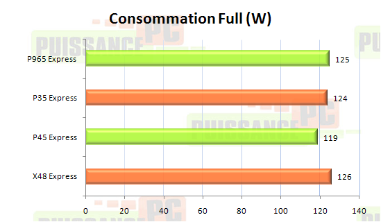 Avant de conclure un petit mot sur la consommation. Comme les cartes mères ne sont pas équivalentes en terme de puces additionnelles et fonctionnalités, la comparaison ne sera pas très précise, cela dit nous avons désactivé tout ce qui était possible à partir du bios. La puissance est mesurée à la prise de courant durant une forte sollicitation CPU/RAM via OCCT.