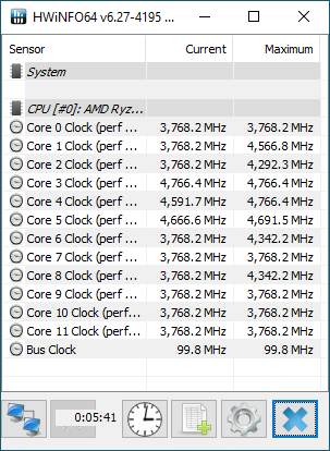 Fréquences CPU-Z Ryzen 9 3900XT