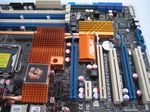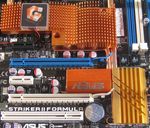 A part le SPP dans sa révision A2 et le bios ici en version 1303, pas grand chose d’original à noter. Plus qu’un long discours, les captures suivantes décriront la carte. Notez en particulier le petit radiateur orange marqué Asus recouvrant la nouveauté du 780i à savoir le nFORCE 200 :