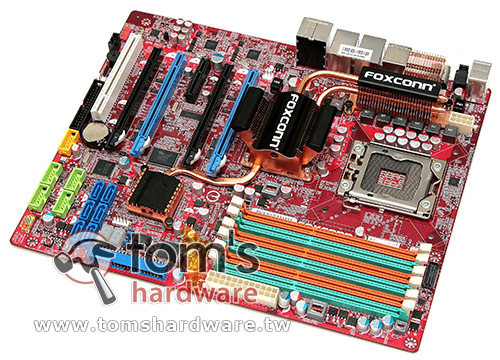 Foxconn a dévoilé par erreur ou pas (traduire volontairement ou pas en fait) des photos de sa carte mère X58 pour le Nehalem. Ces clichés publiés par Tom’s Hardware Taiwan montrent bien le nouveau socket LGA1366, les 6 ports de mémoire ram , triple channel oblige, et quelques zooms sur le pcb rouge de la carte mère. Bref certainement une carte mère sympathique si le prix suit, sachant que Foxconn semble avoir fait des efforts quant au refroidissement et à l’opulence des "périphériques". Clichés en page 2 de cette news.
