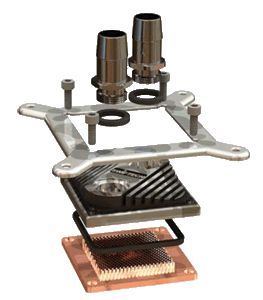 Le second waterblock se nomme Apogee GTX, et même s’il conserve la structure interne de l’Apogee GT, ses performances sont meilleures avec 1° de mieux pour 100W dissipés.