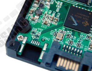 Le contrôleur est un JMicron JMF602. Il est extrêmement difficile de trouver des informations sur ce produit. Cependant, une information ressort souvent, il s’agit de la mémoire embarquée de 16 Ko. Ces 16 Ko seraient donc la seule mémoire tampon du SSD pour les requêtes de lecture/écriture. Nous verrons plus loin l’influence de cette petite quantité de cache.