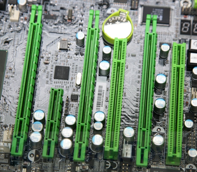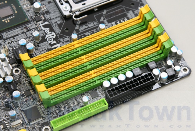 Alors que de nombreux constructeurs ont déjà dévoilé les futures cartes mères à base de X58, DFI est resté un peu plus discret et corrige le tir en présentant sa Lan Party UT X58. La carte est présentée sans son système de refroidissement et manque donc d’un peu d’élégance. Côté caractéristiques, cette dernière embarque 6 slots de DDR3, 3 ports PCI-E 16X (à vous le Tri-SLi ou le CrossFireX !), 8 ports SATA, 6 USB 2.0, 2 ports Gigabit Ethernet, du FireWire etc. On notera également la présence des boutons Power et Reset sur la carte mère bien pratiques. La carte devrait être disponible d’ici la fin du mois et devrait être vendue aux alentours de 300$. Plus d’images en suite de news. (Source : Tweaktown)