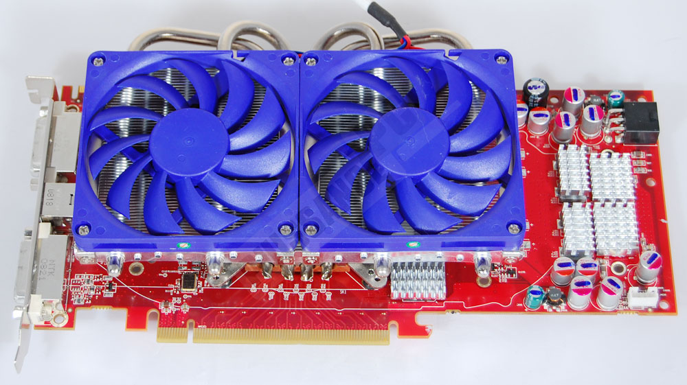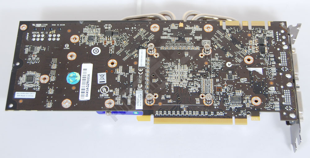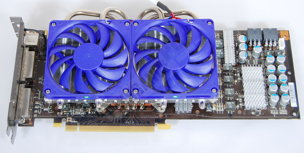 L’assemblage du ventirad en lui-même se déroule alors exactement comme pour la 9800GTX, avec là aussi des caloducs flirtant avec les 2 puces mémoires du haut de la carte.