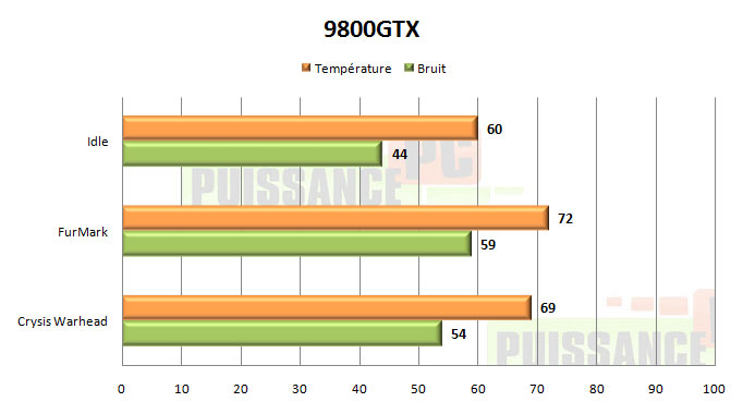 Le refroidissement d’origine de la 9800GTX est une assez belle réussite. Les températures sans être excellentes sont tout à fait respectables, et le niveau sonore assez bien maîtrisé en situation "réelle" d’utilisation, FurMark la rendant bruyante mais n’étant pas spécialement représentatif d’une utilisation concrète.