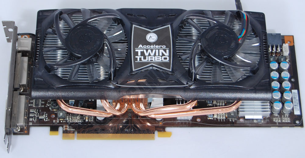 Nous avons tenu à montrer sur cette photo également l’alimentation des ventilateurs. En effet en plus du module en bundle permettant d’alimenter en 7 ou 12V le Twin Turbo, ces ventilateurs possèdent des prises 3 et 4 pins "pour carte graphique", c’est-à-dire qu’il pourra se brancher directement sur votre carte graphique si son ventilateur d’origine possédait une telle prise. L’intérêt ? Profiter de la thermorégulation de la carte pardi !