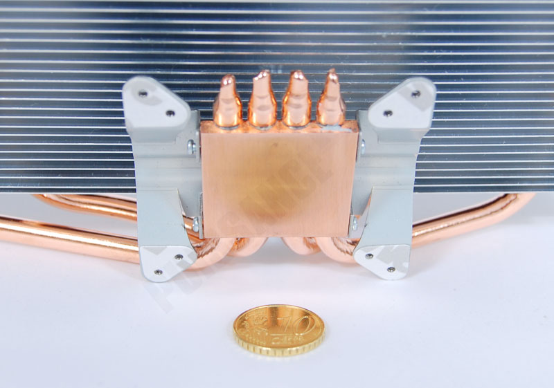 La finition de la base du Twin Turbo n’est pas un modèle, loin de là. Assez fortement striée et sans effet miroir, elle fait penser à une base de radiateur "premier prix". Pas valorisant pour notre ventirad, mais bon ce qu’on en attend ce sont surtout de bonnes performances, attendons ce verdict là. Il sera tout de même intéressant dans un futur de préférence proche qu’Arctic Cooling se penche sur la question.