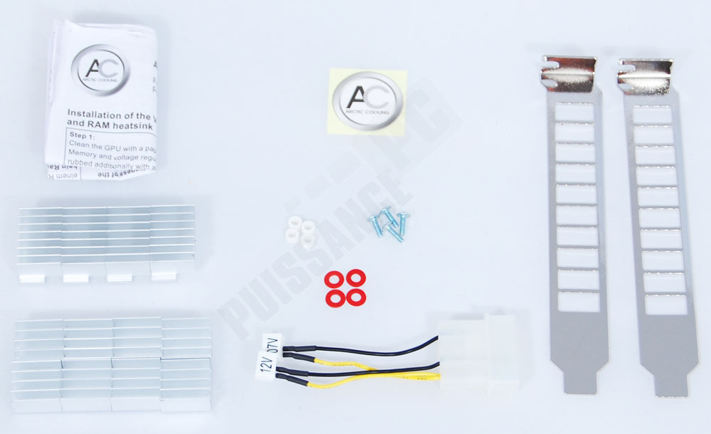 En impression plus désagréable, pas de pâte thermique dans le bundle… une couche est pré-appliquée sur la base du radiateur et c’est tout. Même constat de "minimalisme" concernant les radiateurs. 8 pour puces, 4 pour VRM, et c’est tout. On pourrait rapidement venir à manquer de radiateurs donc, surtout ceux pour VRM, en fonction de sa carte graphique. Dernier point : si la plupart des marques désormais proposent des fixations sans vis, Arctic Cooling la joue plus classique avec le Twin Turbo, avec 4 vis et 8 rondelles.