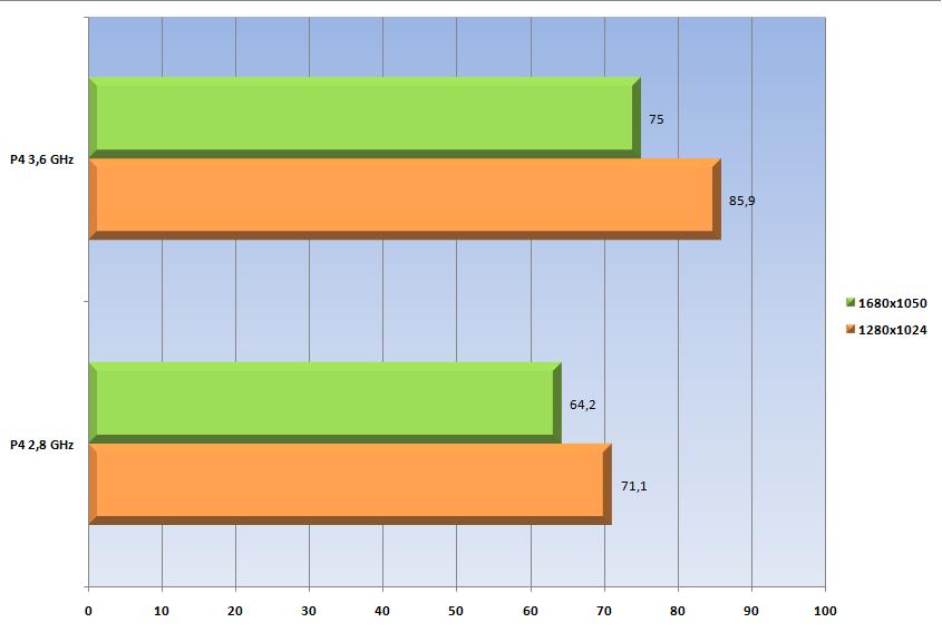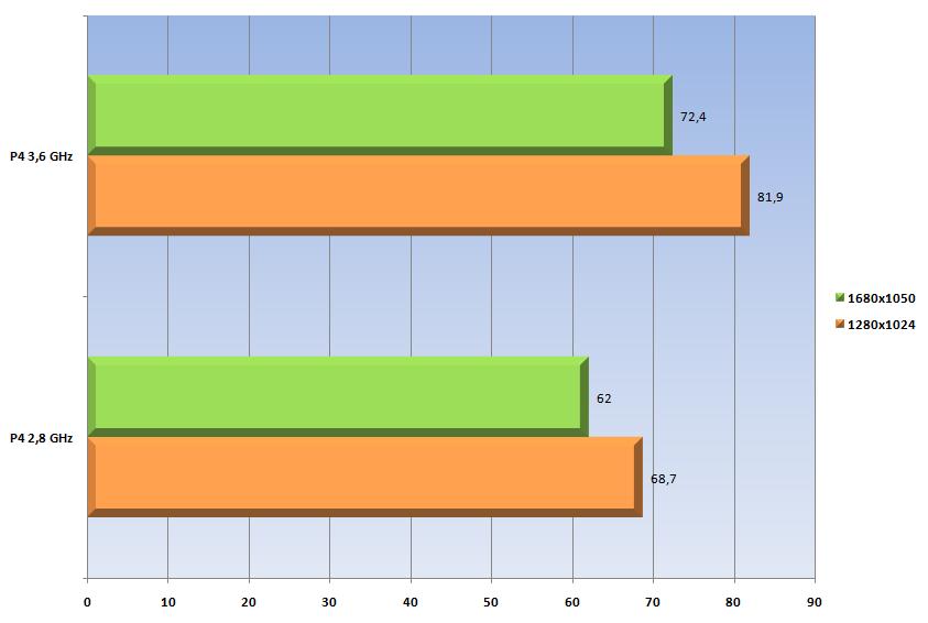 Pas de suprises, comme prévu, le 7900 GT se montre à peu prés 30% plus rapide en moyenne que le 7600 GT et encore une fois, sur l’architecture P4 peu à l’aise sur les jeux, on voit l’impact assez conséquent de l’overclocking du CPU qui à lui seul fait gagner 15% de ips en plus.