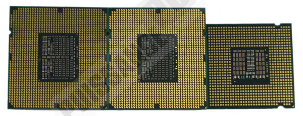 Il fait tout rikiki le Core2 à coté non? Notez que pour camoufler son larcin Thibaut a poncé l’IHS. Voyons les mêmes de dos, 591 pins de contact en plus, ca se voit !