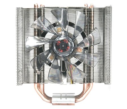 Après avoir sorti son ventirad SpinQ, Thermaltake récidive en nous présentant son TMG IA1 pour refroidir votre processeur (bien qu’il fasse frisquet en ce moment). Il se compose d’une base en cuivre d’où partent 4 caloducs traversant perpendiculairement (mot compte triple) une série d’ailettes en aluminium (51 pour être précis). Ses dimensions exactes sont de 140 x 97.37 x 160 mm pour un poids de 648 grammes. Le tout est refroidi par un ventilateur de 120mm muni de LEDs ayant une plage de rotation qui va de 1300 à 2100 tours/min et dont la durée de vie est de 30000 heures. Enfin le TMG IA1 est compatible avec les sockets AMD AM2/AM2+ et Intel LGA775 mais pas avec les nouveaux Core I7. Sa garantie est de 6 ans pour un prix et une disponibilité inconnus. D’autres photos de l’engin en suite de news. (Source: TechConnect)