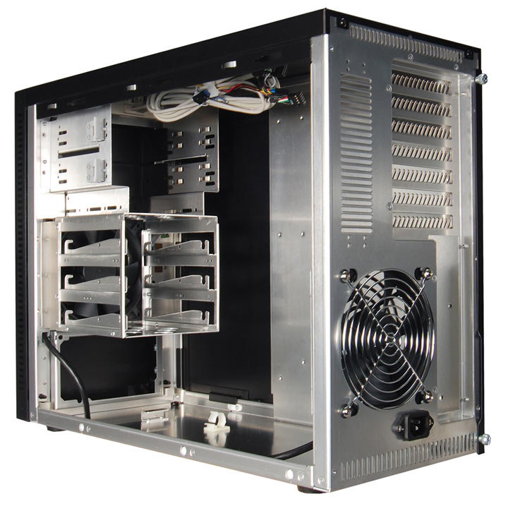 Décidémment Lian Li met le paquet pour séduire un maximum de joueurs et d’utilisateurs PC. Sa dernière création se nomme A05N et se veut différente des autres tours : en effet tout est inversé chez elle. L’alimentation est en bas et contre la face avant, mais la carte mère également, le flux d’air cette fois-ci étant crée par le ventilateur 120mm à l’arrière qui aspire l’air pour l’insuffler dans le boitier, tandis que le ventilateur avant se charge d’évacuer l’air chaud hors du chassis par des events sur la façade avant. Ses dimensions de 210mm x 381mm x 490mm en font un boîtier compact mais accueillant de l’ATX comme du µATX. Son tarif est de 95$ US sans les taxes locales. Une image de la tour vue intérieure vous attend en suite de news.